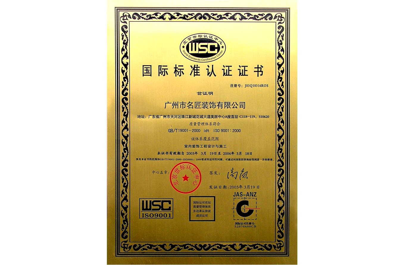 获得国际标准认证证书、“广东知名装饰设计公司”荣誉